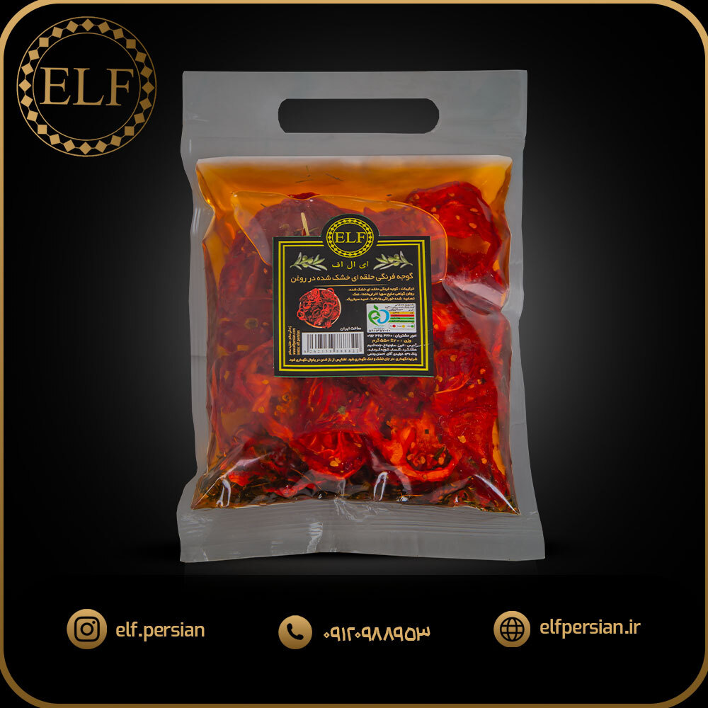 گوجه فرنگی حلقه ای خشک شده در روغن گیاهی پاکتی